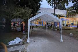 ასევე მაგიდა სკამები, განათების გირლიანდა, მიკროფონი და დინამიკი.