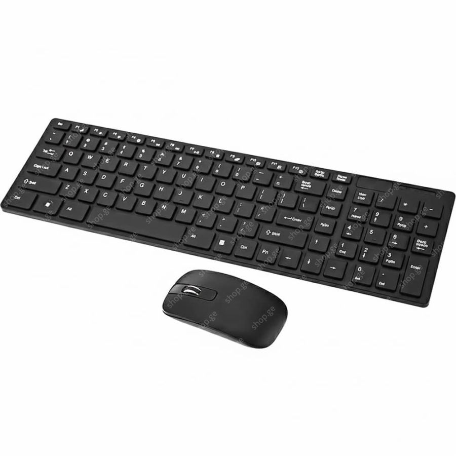 კლავიატურას აქვს ულტრა-თხელი პროფილი და დაბალი ღილაკები (როგორც ლეპტოპებზე), რაც უზრუნველყოფს ჩუმ და რბილ ბეჭდვას. განლაგება მოიცავს ციფრულ ბლოკს (Numpad). მაუსს აქვს ერგონომიული სიმეტრიული ფორმა. ორივე მოწყობილობა უკავშირდება კომპიუტერს ერთი საერთო USB მიმღებით 2.4 GHz სიხშირეზე. ეს ზოგავს USB პორტებს და უზრუნველყოფს კავშირს 10 მეტრამდე მანძილზე. კომპლექტი თავსებადია უმეტეს მოწყობილობასთან, რომელსაც აქვს USB პორტი (PC, Smart TV).