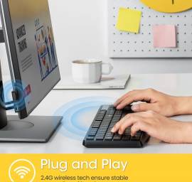 ჩართეთ და ითამაშეთ, ერთი პატარა მიმღები აკავშირებს კლავიატურას, სხვა დრაივერი ან კონფიგურაცია არ არის საჭირო. 2.4G უკაბელო ტექნოლოგია მიღებულია უფრო სტაბილური კავშირისთვის და 10 მეტრამდე ეფექტური უკაბელო კავშირის უზრუნველსაყოფად.