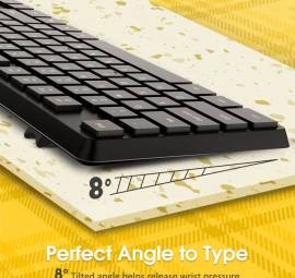კომფორტული დაბალი კლავიშები და სტანდარტული ამერიკული განლაგების კლავიატურა სრული ზომის დიზაინით იძლევა კომფორტულ და ეფექტურ აკრეფას შესანიშნავია თქვენი ყოველდღიური გამოყენებისთვის. F + J კლავიშებს აქვთ დაბრკოლება, რომ იმუშაოთ კლავიატურის ყურების გარეშე. რეზინის "ფეხები" უკანა მხარეს არის ძალიან მყარი აკრეფისას არ იწვევს მოძრაობას.