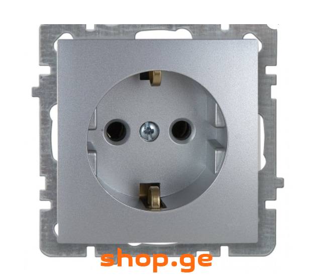 ვერცხლისფერი დამიწებიანი როზეტის მექანიზმი ჩარჩოს გარეშე