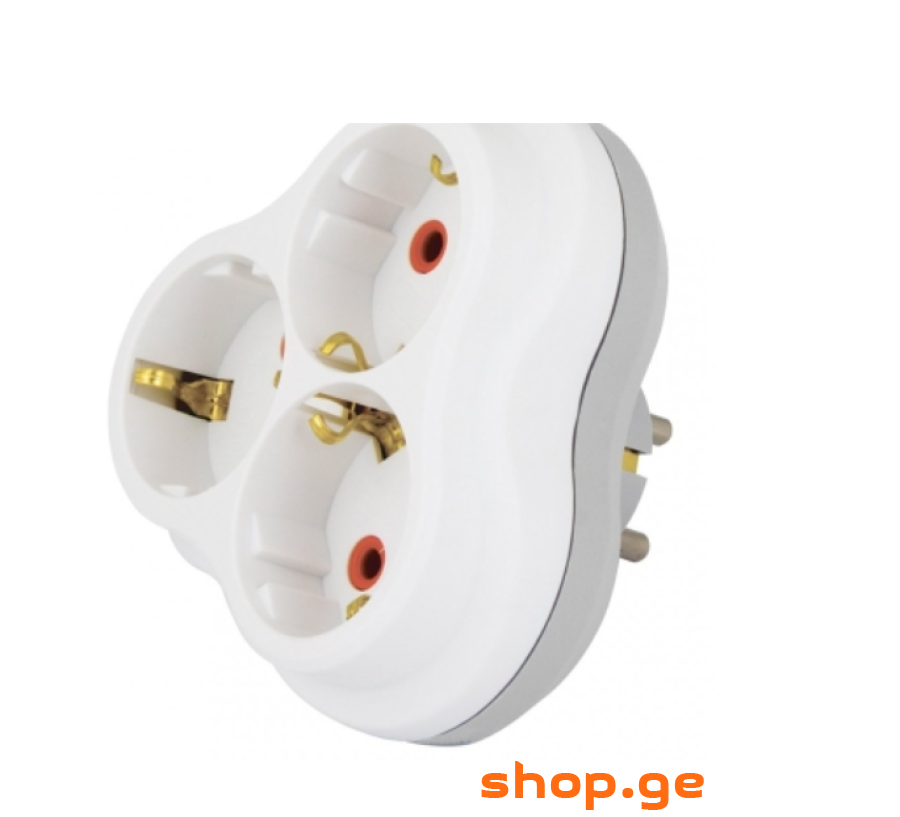 3-ნი როზეტი (სამკაპი) ჩანგლით დამიწებით