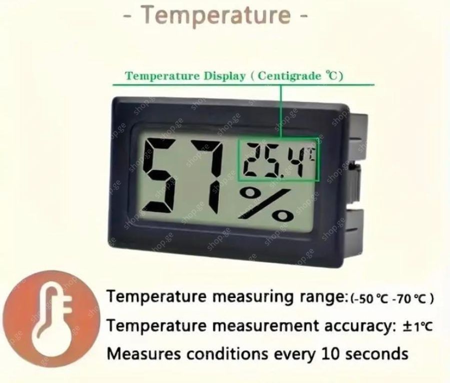 ✅ ჰიდრომეტრი/თერმომეტრი- ჰაერის ტემპერატურის და ტენიანობის განმსაზღვრელი ციფრული აპარატი.