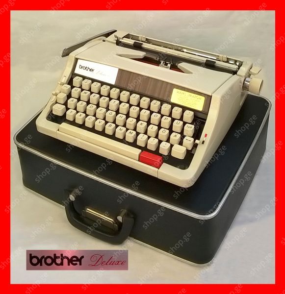 - "Brother Deluxe" ვინტაჟური კლასიკური კომპაქტური სამგზავრო საბეჭდი მანქანა ლათინური ინგლისური ასოებით არის რარიტეტი, ვინტაჟი, გამოიყენება როგორც პერსონალური საქმიანობისთვის, ასევე გამოდგება როგორც დეკორაცია და რეკვიზიტი თეატრში ან კინოფილმის გადაღების დროს, ფოტოსესიებისთვის, ფოტო გადაღებისთვის (ფოტოგრაფია).