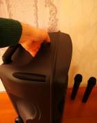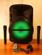 მოყვება 2_ცალი მიკროფონი რომელიც უკაბელოდ უკავშირდება ამ დინამიკს რომელიც ძალიან კარგად მუშაობს.
