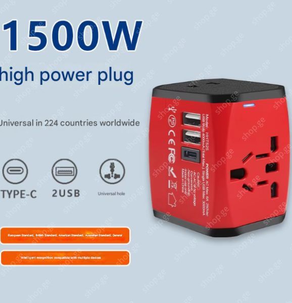 საერთაშორისო უნივერსალური 100-250V შტეფსელის ადაპტერი სამოგზაურო