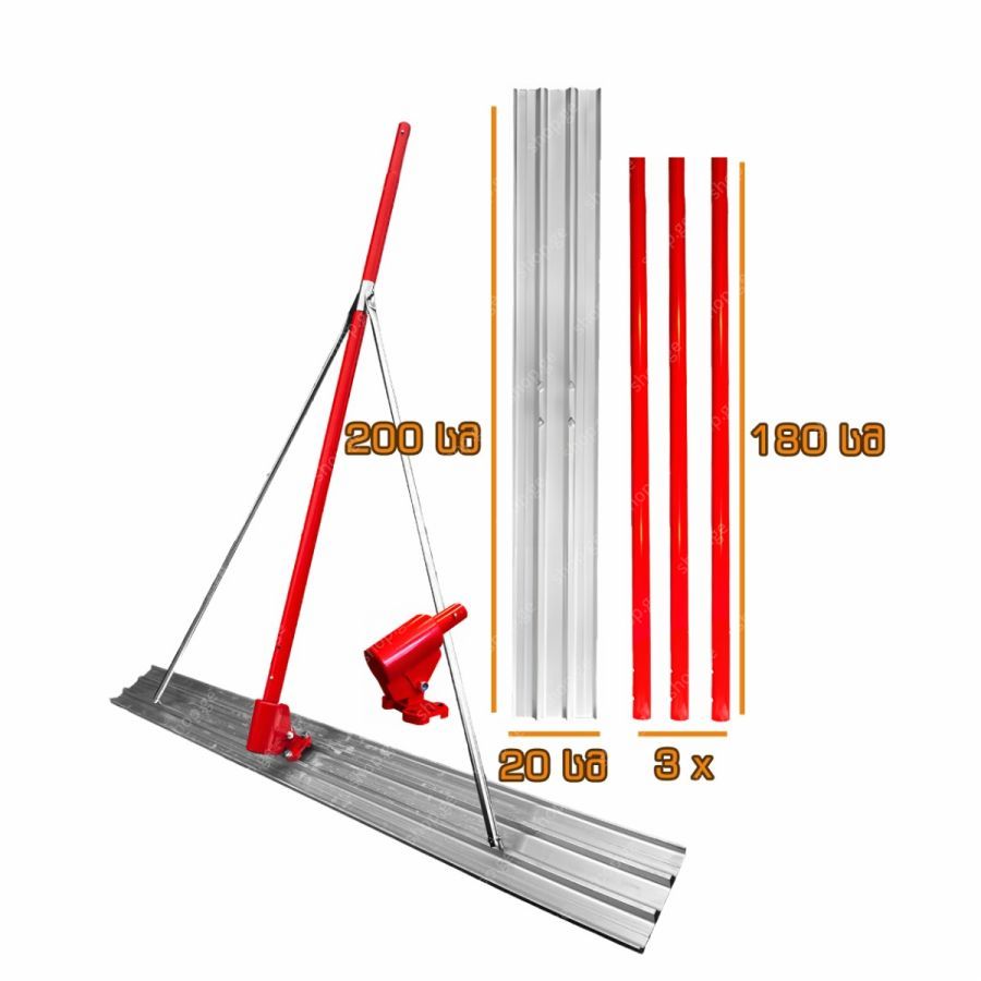 ალუმინის-მაგნიუმის შენადნობი სასწორებელი უთო. არის მჩატე აქვს სიგრძის რეგულირების შესაძლებლობა შესასრულებელი სამუშაოს მიხედვით.ასევე აქვს რედუქტორი რითაც სახელურის გადატრიალებისას იცვლება პირის მდგომარეობა. ერთი სახელურის სიგრძე შეადგენს 180 სმ-ს მოყვება 3 სახელური რითაც შეგიძლიათ გაშალოთ 540 სმ-მდე. არის ძალიან მარტივად ასაწყობ დასაშლელი.