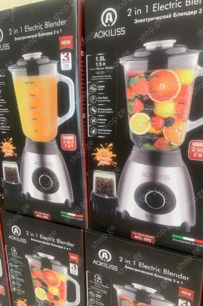 ✅ ACKILISS ACL-295 ბლენდერი და ყავის საფქვავი. მოცულობა:1,5 ლიტრი, კონტეინერის მასალა:მინა.