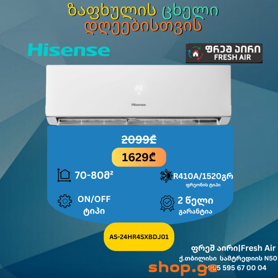 Hisense-ის კონდიციონერს აქვს 2 წლიანი გარანტია და მოყვება სრული კომპლექტაცია,