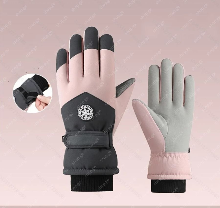 ზამთრის სათხილამურო ხელთათმანები, თბილი, ქარგაუმტარი, გასქელებული